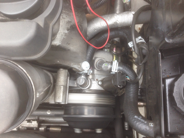油圧コンプレッサーの下にエアコンコンプレッサーがあり ベンツは可変式のコンプレッサーのため外から見ても電磁クラッチが入っているのかがわかりません。